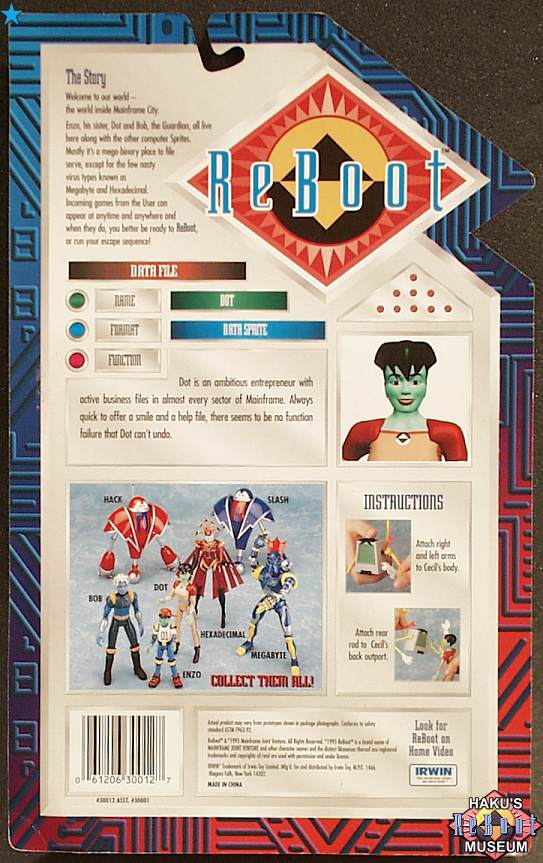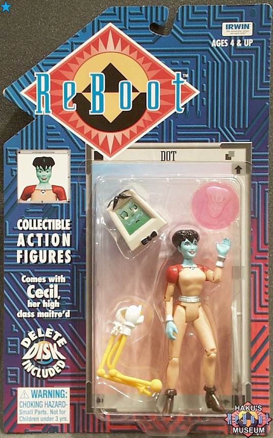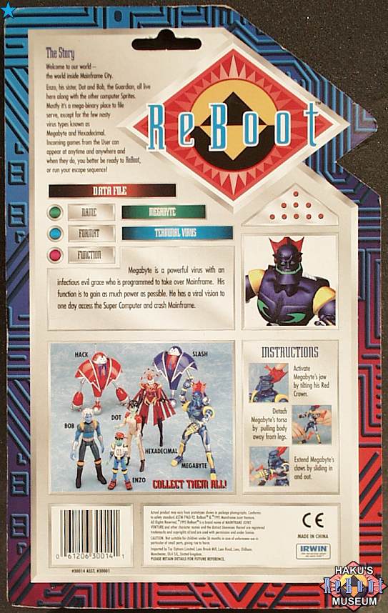 More rare figures, each of the 7 figures comes with a CD Rom full of stuff, what's on them I don't know as I haven't opened any of them yet and don't plan to. We have hell hound Frisket from "To Mend and Defend", Bob from "Bad Bob", Dot from "Talent Night", Guardian Enzo, web creature infected Megabyte, Hack & slash with rocket hands. I have the complete set on card but still need these loose ones: Megabyte, Dot, Bob with accessories. If you have them to sell, please contact me. |